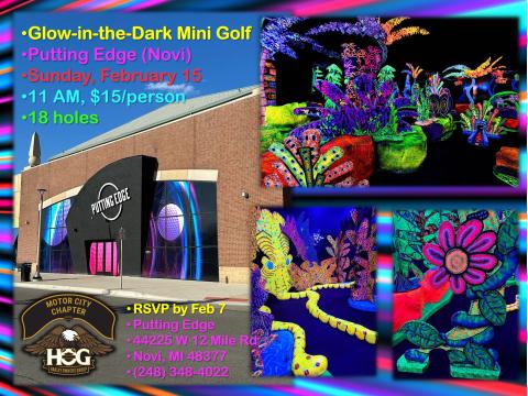 Join our HOG chapter for 18 holes of glow‑in‑the‑dark mini golf—where the balls glow, the putters shine, and bragging rights are brighter than neon!