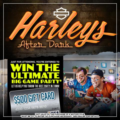 Simply attend January's Harleys After Dark Event and you will be entered for a chance to win!