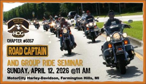 Please join us to learn what it takes to become a HOG ROAD CAPTAIN, and how to ride in a group safely.